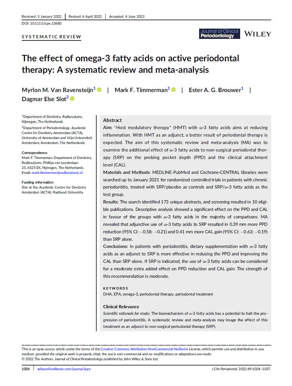 The effect of omega-3 fatty acids on active periodontal therapy: A systematic review and meta-analysis