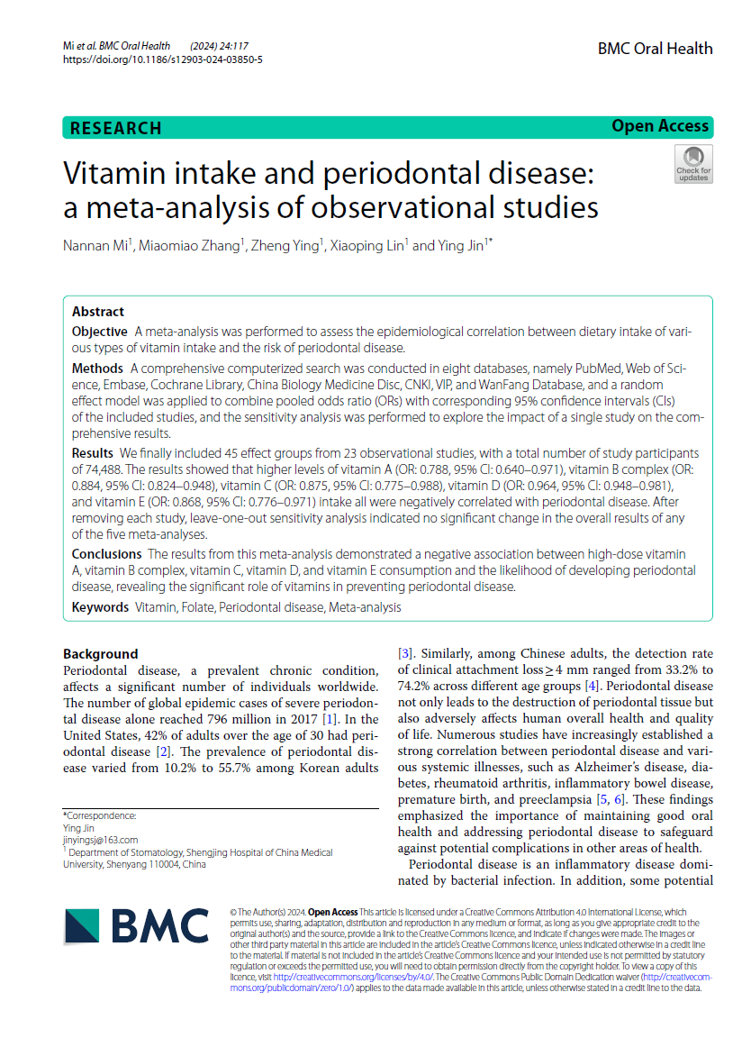 The association between vitamins and periodontal disease: a systematic review and meta-analysis of observational studies